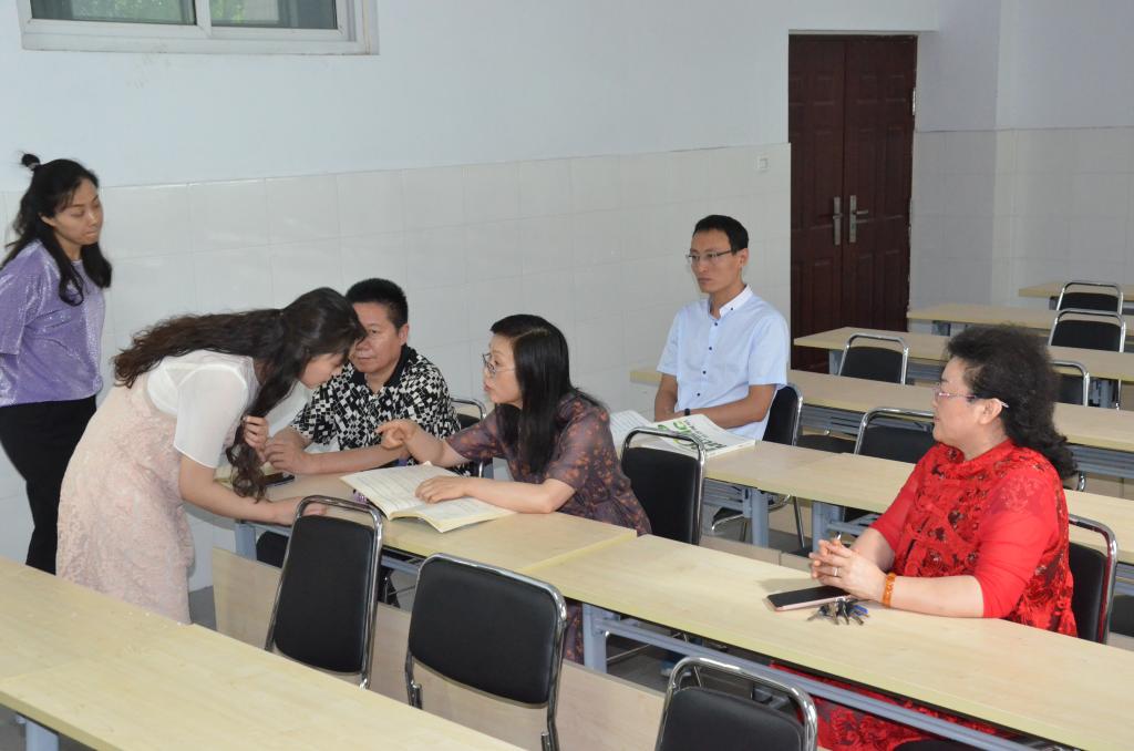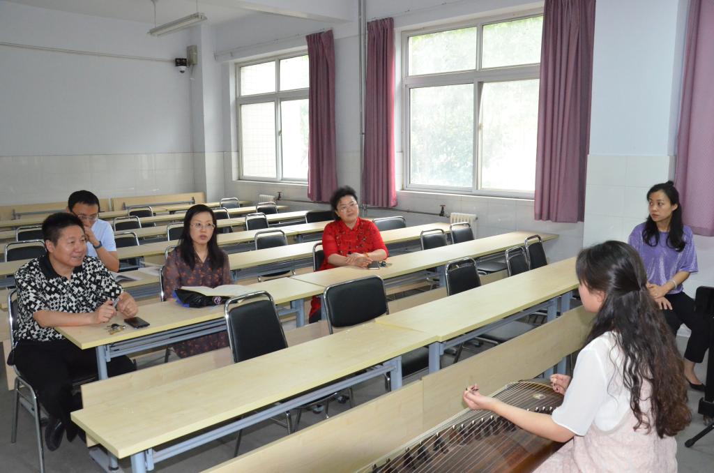 2018年5月28日下午,太阳成集团122ccvip经理雷红薇、党总支书记陈静梅、副经理江团结、团总支书记王达亮在太阳成集团122ccvip楼A211教室现场观摩了正在备赛全国弹拨乐技能大赛同学的演奏和听音训练,并针对问题提出指导意见。