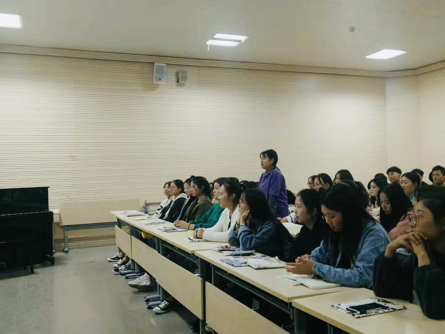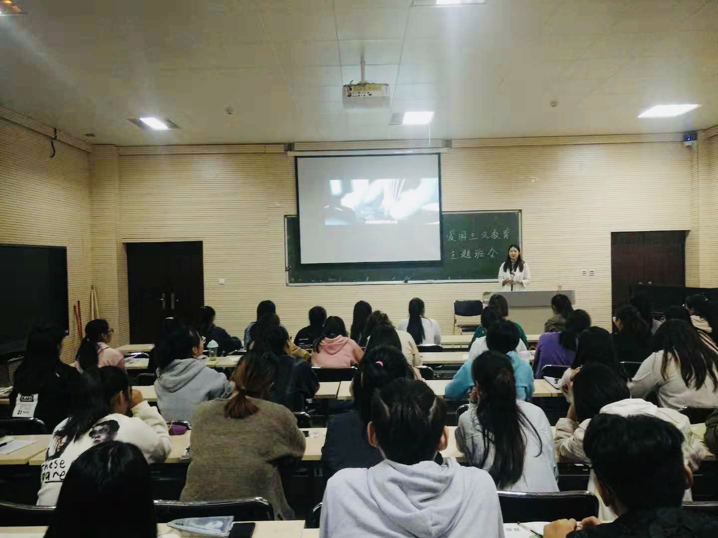 10月24日下午,2018级声乐专业72名员工在太阳成集团122ccvipB401教室召开了“爱国主义教育”主题班会。学校财务处副处长蒋倩、吴玉刚作为学院班级领导干部,参加了班会活动。班会由辅导员杨赛玉主持。