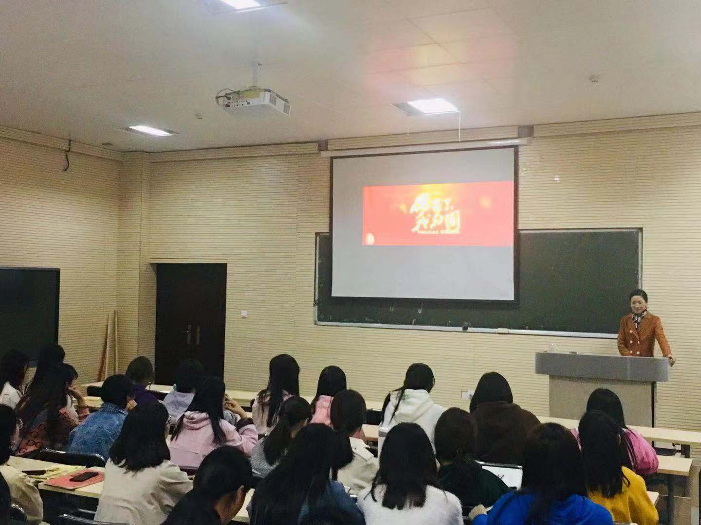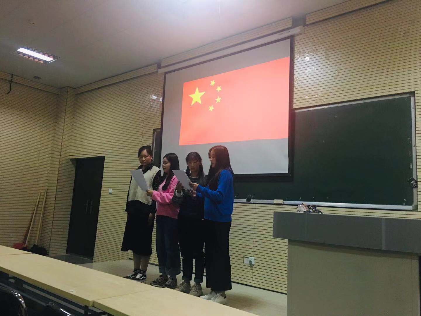 班会首先由辅导员崔琳婕讲述中华民族近代屈辱的血泪史,其次观看影片《厉害了,我的国!》感受当今大国的崛起,并着重强调十八大以来国家的发展与变化。接着,唱国歌,唤起员工的民族自豪感。最后,进行爱国主义诗歌朗诵,从诗词中感受家国情怀,增强民族自豪感。