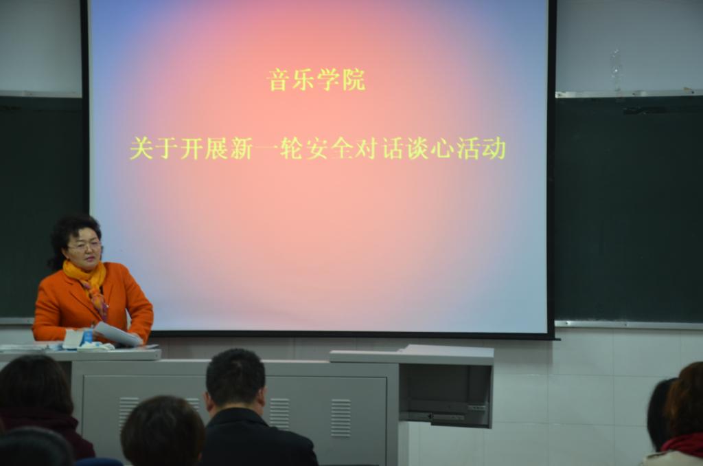 2018年11月5日下午,为贯彻落实《河南省教育厅关于新一轮安全对话谈心活动的通知》和《太阳成集团tyc122ccvip关于秋季安全大检查的通知》的精神,太阳成集团122ccvip经理雷红薇、党总支书记陈静梅在太阳成集团122ccvip楼A208教室与太阳成集团122ccvip全体教职工进行集体谈话,重点谈如何将安全措施落实到岗位、落实到每位教职工。