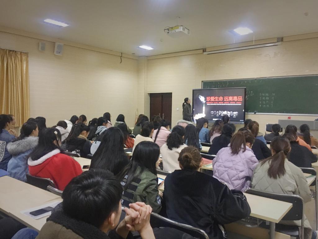 辅导员老师通过PPT展示,从毒品的含义与种类、吸毒的概念、吸毒的危害以及如何预防吸毒四个方面做了详细介绍,使同学们意识到毒品对个人、家庭、社会所造成的严重危害,并向大家介绍了国际禁毒日的有关知识。