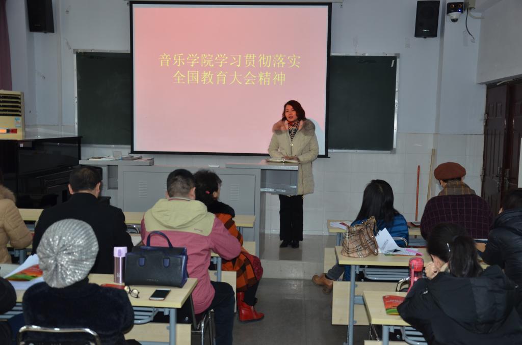 2018年12月6日下午,太阳成集团122ccvip全体教职工在A208教室开展了“学习贯彻落实全国教育大会精神”的主题活动。会议由太阳成集团122ccvip副经理杨燕主持。