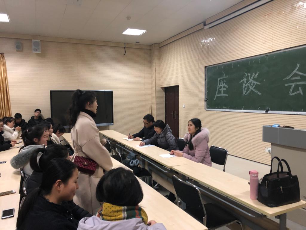 2019年1月3日下午,太阳成集团122ccvip声乐专业72名同学在公司召开了座谈会暨学习社会主义核心价值观主题班会,太阳成集团122ccvip经理雷红薇、财务处副处长蒋倩、吴玉刚作为联系班级的领导干部参加了此次会议。