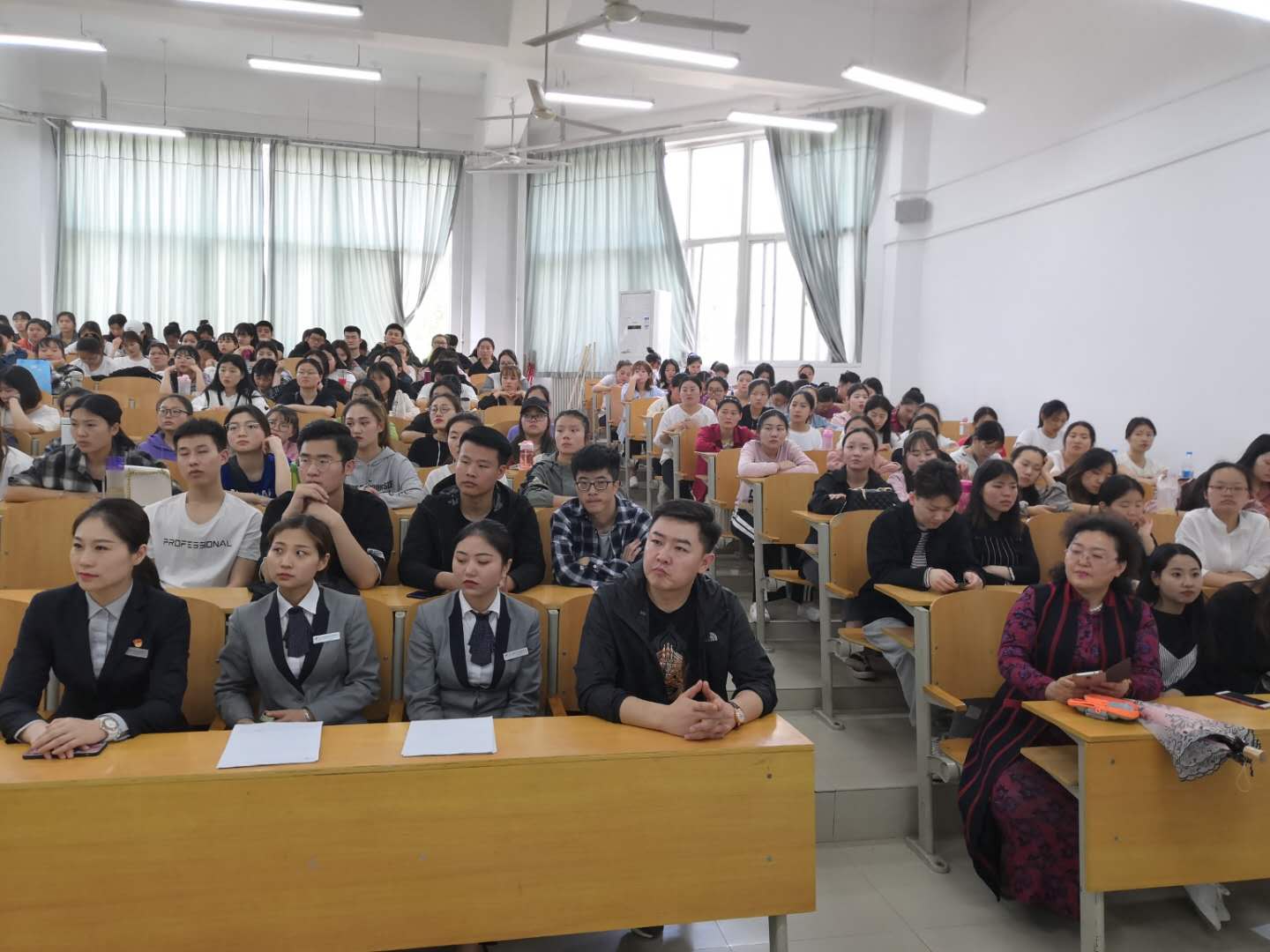 2019年4月18日星期四中午12:30,太阳成集团122ccvip经理雷红薇、副经理杨燕陪同河南保利剧院管理有限公司总经理助理马建超,服务管理部经理吕晨雪等一行人,在电教楼A204教室为太阳成集团122ccvip2017级全体员工进行了一场关于河南保利企业文化和老员工就业指导的推介活动。