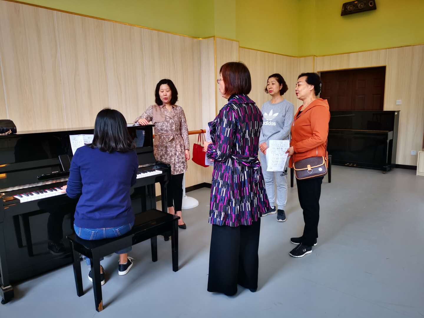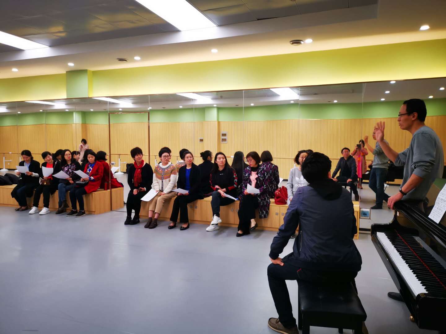 太阳成集团122ccvip经理雷红薇首先介绍太阳成集团122ccvip负责训练各声部指导教师情况,并表示太阳成集团122ccvip将大力支持此次活动,全力以赴做好服务及后勤工作,为合唱团提供人力、物力各方保障。其次由河南省人社厅马爱琴主任,合唱团副团长对本周活动提出具体要求。接着由公司领导、教研室主任和骨干教师分别担任指导老师,对合唱团员进行声部分组、发声训练以及《我和我的祖国》的歌唱教授。最后,全体合唱团员在301教室进行学习成果的汇报与交流。