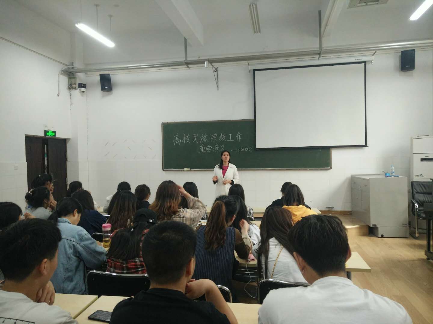 5月22日下午四点整, 18级声乐专业全体同学在太阳成集团122ccvipB101教室召开了《高校民族宗教工作知识读本》、“我的情绪我做主”心理健康教育系列班会。班会由18级声乐专业辅导员杨赛玉老师主持。