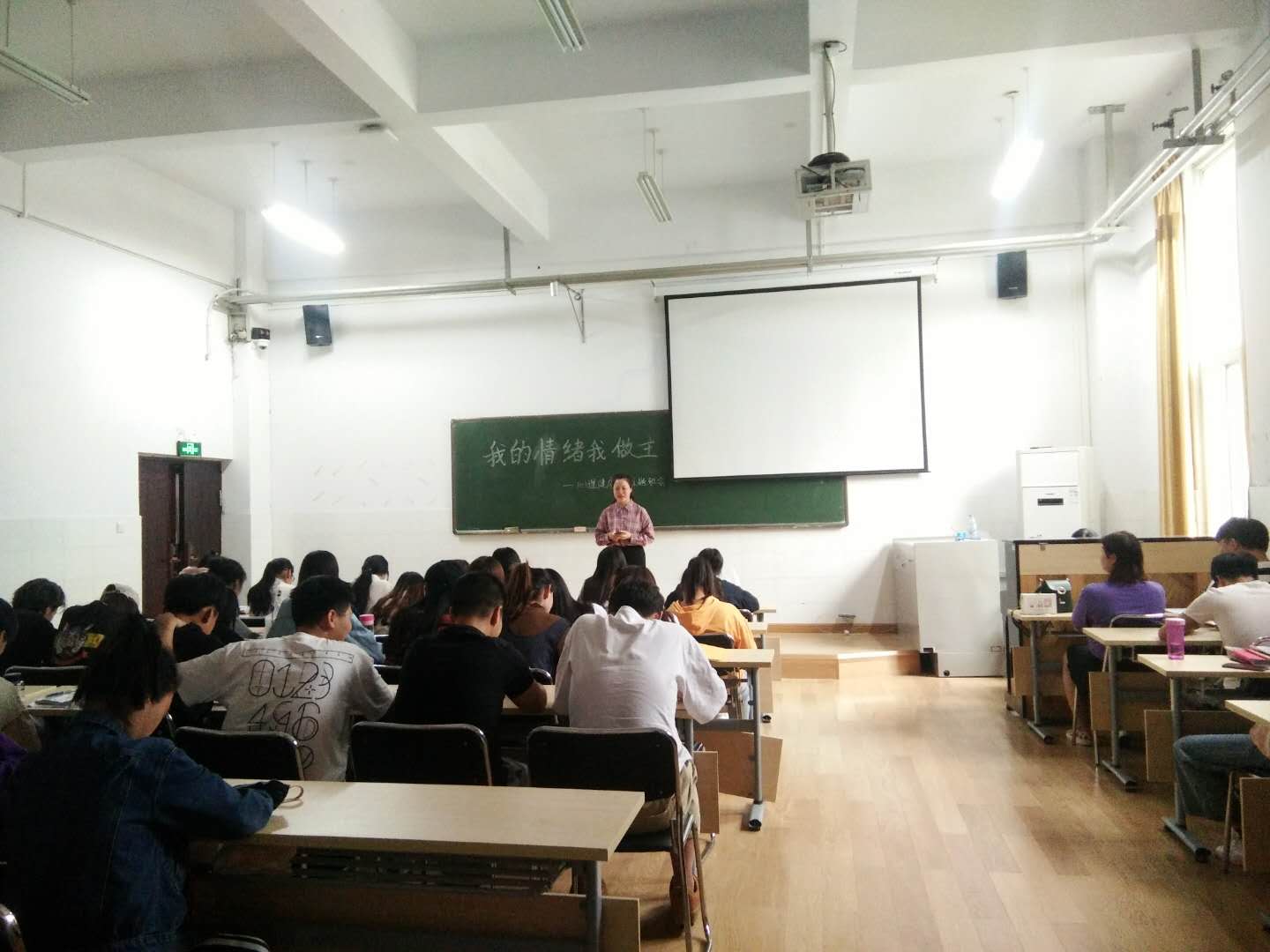 其次,班委围绕着如何进行不良情绪的自我调节与同学们进行交流,同学们纷纷发言畅谈自己情绪发泄的方法,并表示应该理智的用合理的方法来宣泄自己内心的情绪。