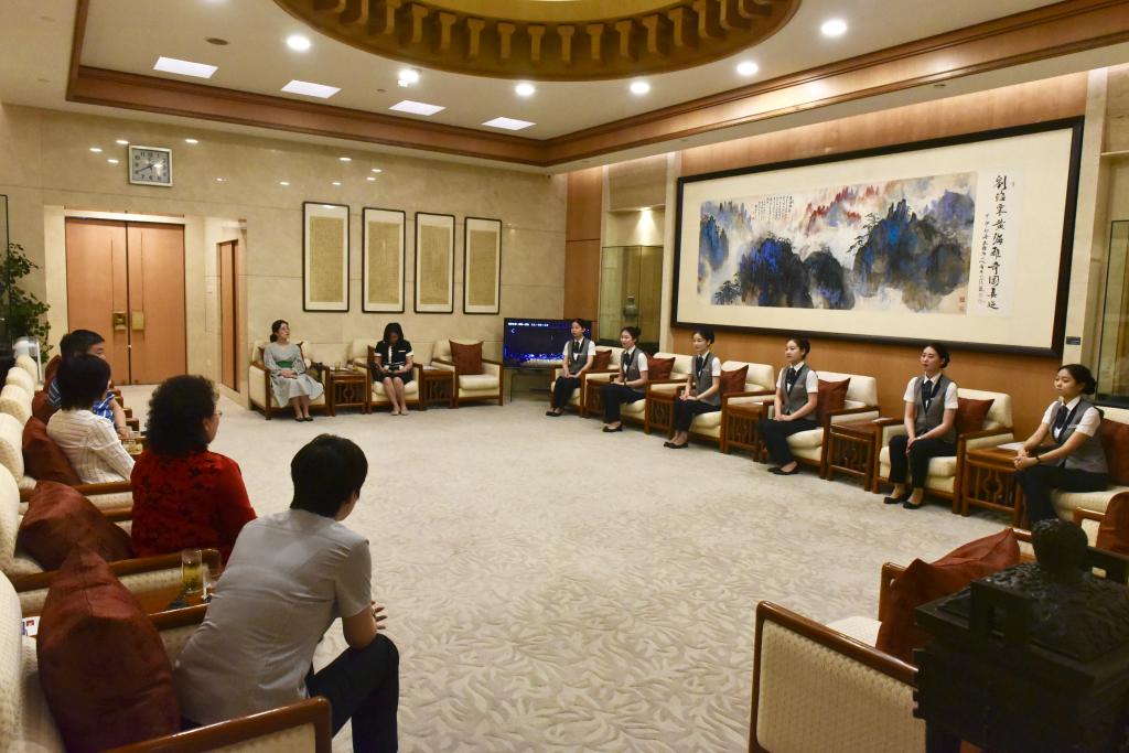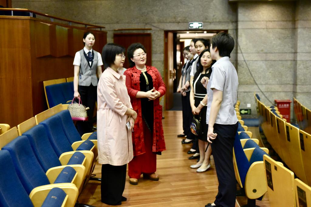 一行人在北京保利剧院管理部总经理杨松颜的陪同下,参观了大厅、休息室、后台化妆间及剧场,对企业文化与员工的工作环境进行了全方位的考察。随后,李桂贞经理与顶岗实习员工进行亲切交谈,通过“收获与困惑”话题,听取了员工们的工作心得与生活情况。