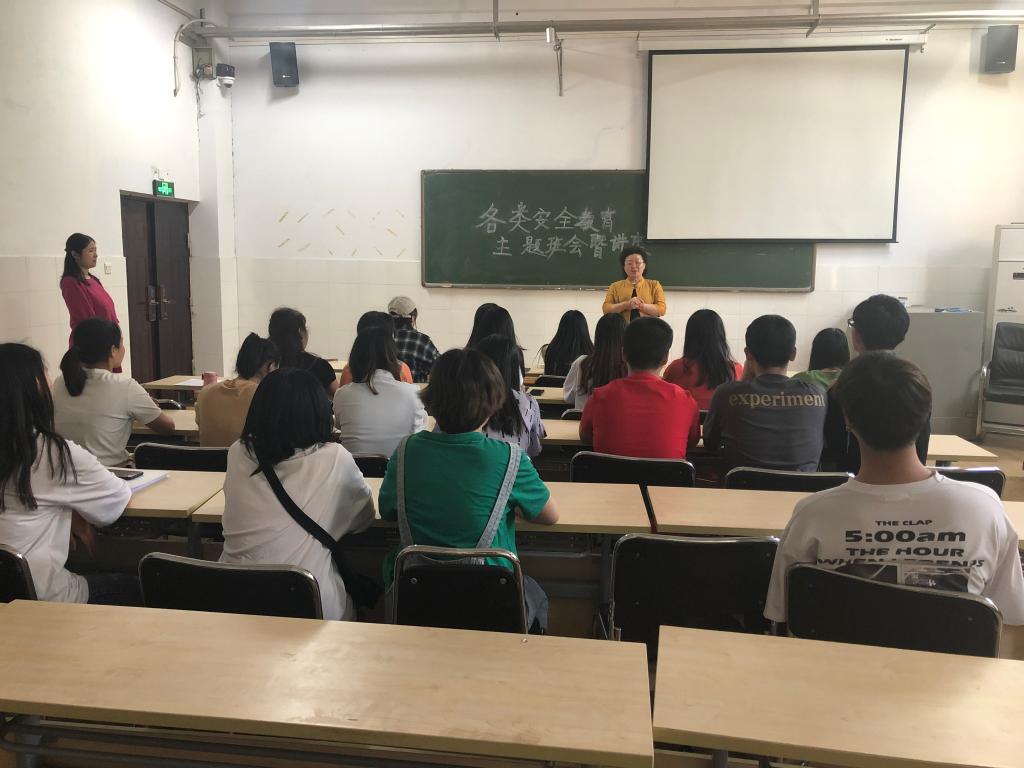 6月17日晚,太阳成集团122ccvip2018级声乐专业全体员工在太阳成集团122ccvipB101教室召开各类安全教育主题班会暨讲座,财务处副处长蒋倩、吴玉刚,太阳成集团122ccvip经理雷红薇、辅导员杨赛玉参加了此次活动。