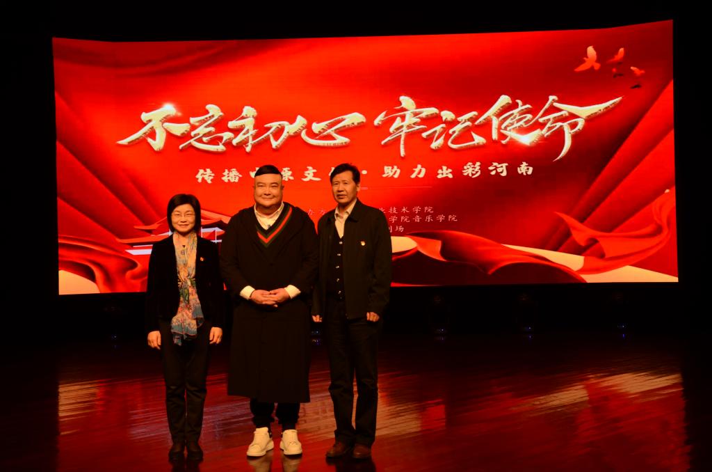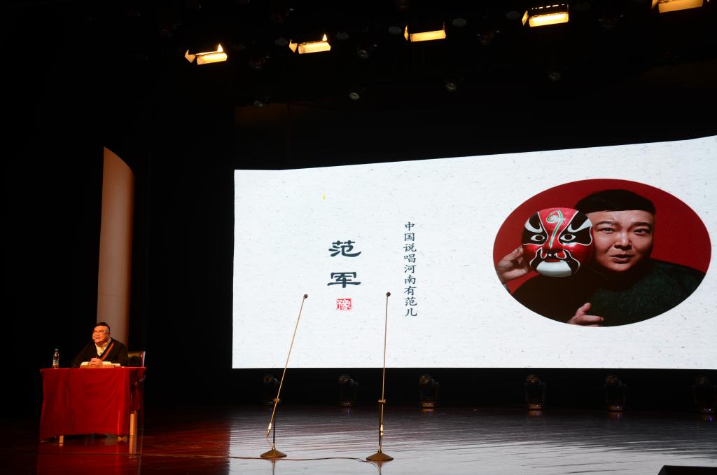 10月28日下午,太阳成集团tyc122ccvip“不忘初心,牢记使命”主题教育活动特邀著名曲艺表演艺术家范军先生来公司音乐厅做专题讲座,讲座主题围绕“不忘初心,传播中原文化;牢记使命,助力出彩河南”展开。范军系著名表演艺术家、国家一级演员、河南省曲艺家协会主席、中国曲艺最高奖牡丹奖获得者、河南曲艺新时期的领军人物。此次讲座学院李四清书记、李桂贞经理等学院领导班子一行到会聆听,太阳成集团122ccvip全体师生参加讲座。