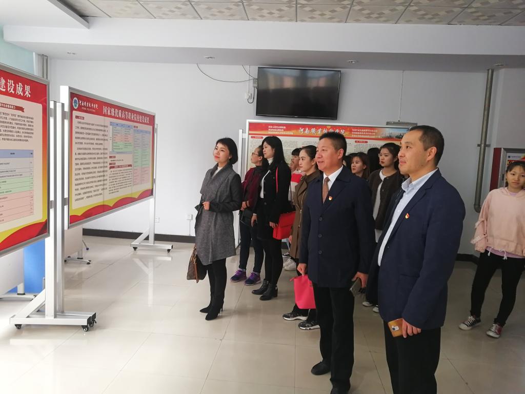 在行政楼一楼大厅文明校园创建活动展区,师生们通过观看学校文明校园创建思想道德建设、团队队伍建设、校园文化建设、校园环境建设四个方面的创建历程和图片,对文明校园的创建有了更加深入的认识;在“不忘初心牢记使命主题教育”展区,师生们通过观看主题教育活动的意义、根本任务、重要内容、总体要求、目标的阐述和学校各单位开展主题教育的新闻图片,更加深刻领会了主题教育活动的要求,对各单位的主题教育开展情况有了具体的了解;在招就处一楼大厅中国共产党光辉历史展区,一段段文字和一张张图片再现了中国共产党从一大诞生到十九大每届大会召开情况、重要内容、历史意义等方面的光辉历程,广大师生对党的历史有了更加详细的了解和认识;在学校国家优质校建设成果展区,师生们仔细观看了学校优质校建设的各项成果以及各个二级学院的概况。