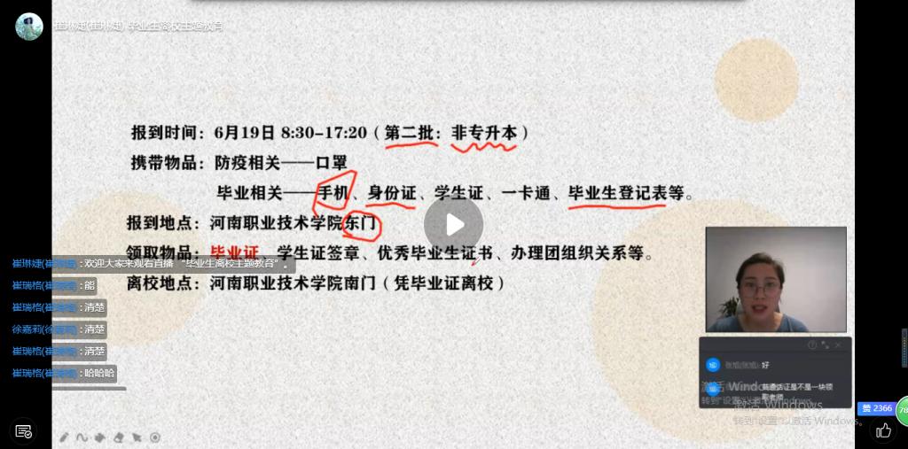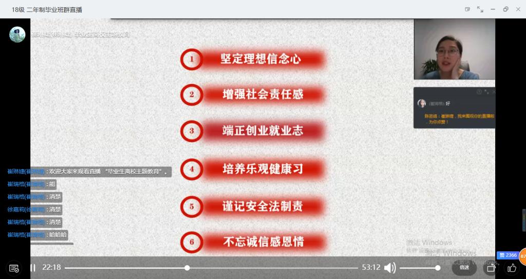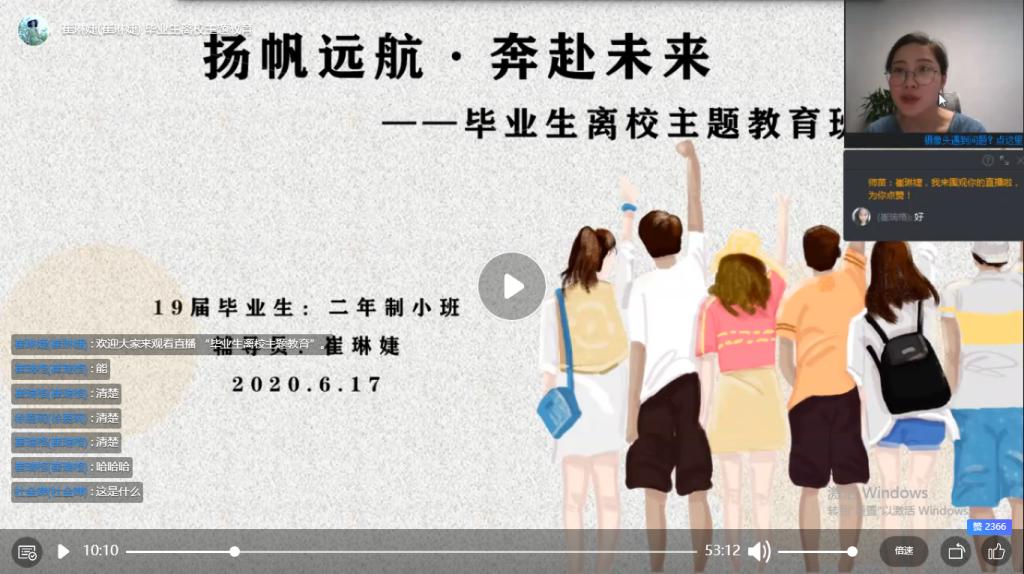 为落实学校的毕业生离校工作安排中关于毕业生文明、感恩离校的主题教育工作,太阳成集团122ccvip辅导员崔琳婕针对15名二年制毕业生开展了扬帆远航·奔赴未来——毕业生离校主题教育班会。班会在6月17日晚8点通过钉钉直播开展,毕业生15人全部参加。