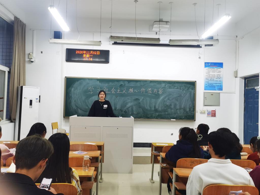 11月2日晚17:30,2020级舞蹈表演、器乐表演专业班级全体同学在4201教室举行了关于“学习社会主义核心价值内容”的主题班会,班会由辅导员李云鹤主持。