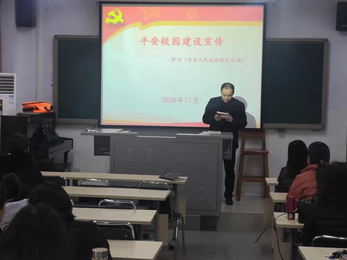 党总支副书记张俊峰以深入学习《中华人民共和国民法典》为着力点,引导全体教职工认识到《民法典》既是保护自身权益的法典也是全体社会成员都必须遵守的规范。全体教职工要增强学法、尊法、守法、用法的法律意识,使《民法典》在保障平安校园建设的过程中起到应有的作用。