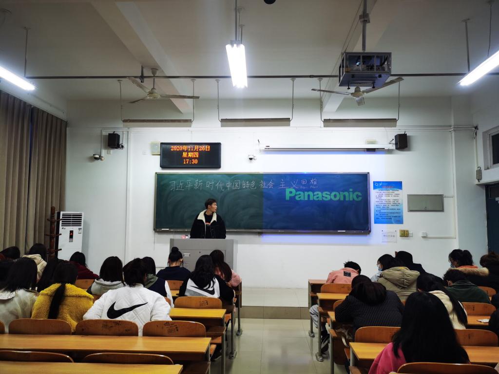 班会围绕“深入学校习近平新时代特色社会主义思想”的主题内容展开,辅导员老师讲解了社会主义初级阶段论是我们党在继承马克思主义关于社会主义阶段划分理论,总结国内外社会主义实践经验教训的基础上作出的新的科学概括,并对习近平新时代特色社会主义思想的核心内容进行了详细说明和讲述。班会上,李老师也请各位同学们分享了学习心得和体会,班会的学习也让同学对特色社会主义思想有了更进一步的了解。