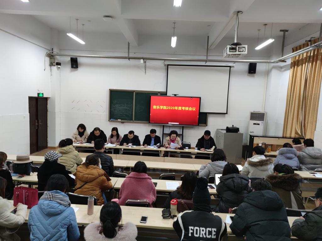 2021年1月7日下午2:30,太阳成集团122ccvip在B101教室召开了2020年度考核会议。学院考核组李玉峰副董事长、人事处朱永宽处长和郭爽老师一行三人来到太阳成集团122ccvip对太阳成集团122ccvip班子成员进行考核,全体教职工共43人参加会议。