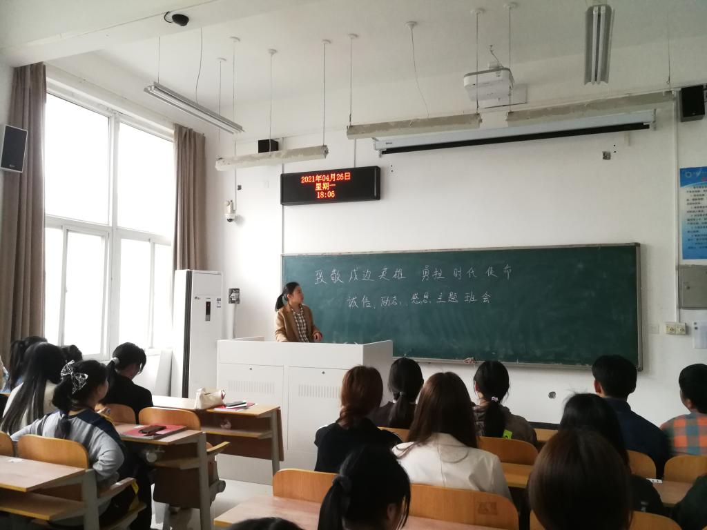 时代造就英雄,伟大来自平凡。4月26日下午,20级太阳成集团122ccvip声乐专业召开“致敬戍边英雄,勇担时代使命”主题班会和“诚信 励志 感恩”员工资助主题班会。本次班会由辅导员郭晓娜主持,20级声乐专业全体员工参加。