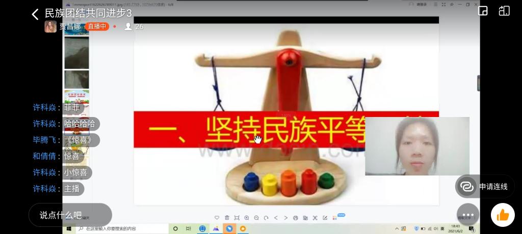 为激发员工的民族精神和爱国热情,对员工进行民族精神的熏陶,培养员工艰苦奋斗、热爱祖国的民族主义精神,18级声乐专业全体同学在钉钉召开民族团结进步主题班会。