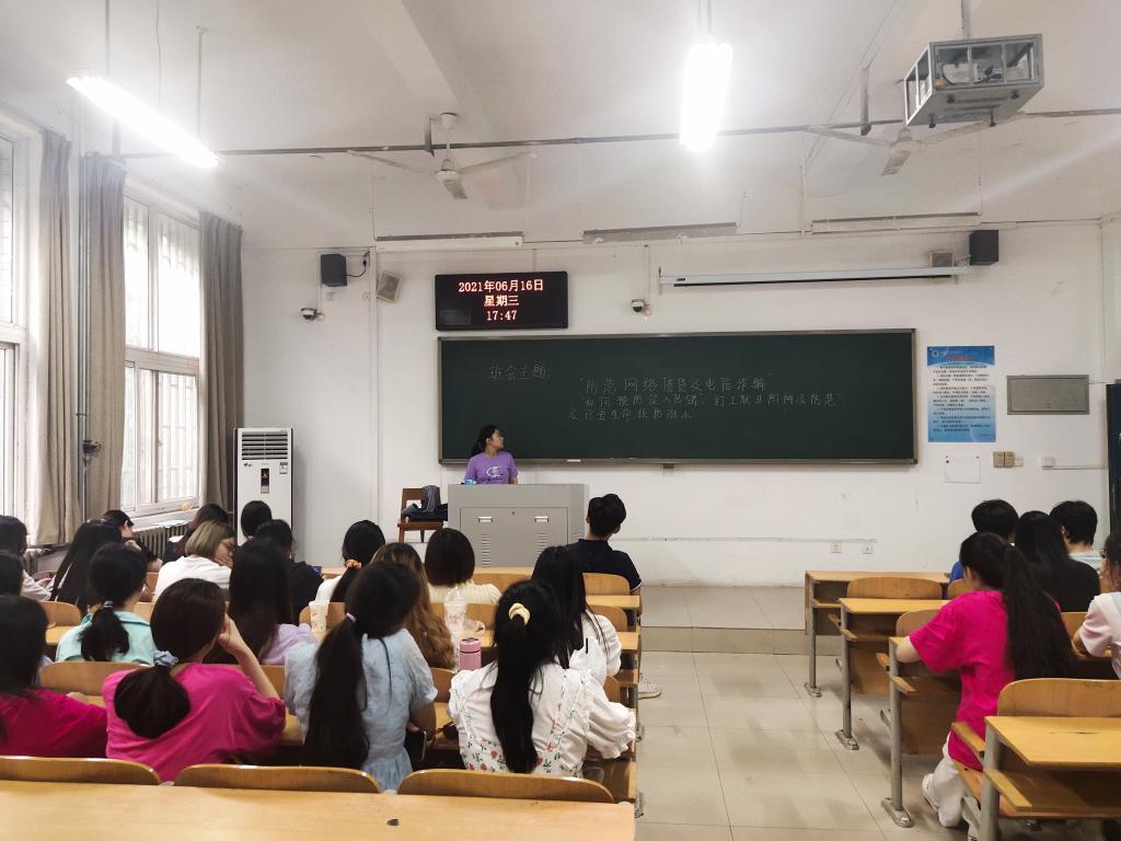 6月16日下午,20级声乐专业在1105组织召开班会,主题是“‘防范网络借贷及电信诈骗’‘如何预防误入传销’‘打工就业陷阱及防范’及‘珍爱生命预防溺水’”,班会由辅导员郭晓娜主持,声乐专业全体员工参加。