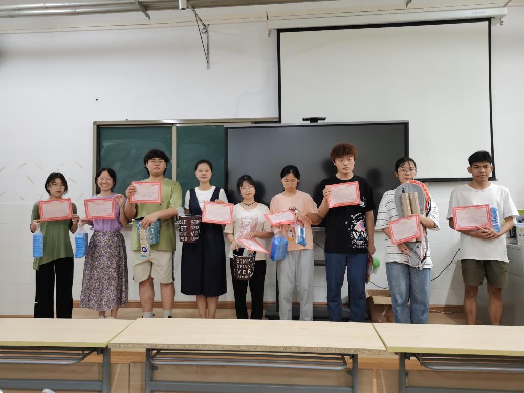 会上为获得荣誉的集体颁发证书和奖品。希望获奖集体发挥好先进典型作用,提升集体荣誉感和安全意识,发挥好员工干部、党员、寝室长等示范作用,养成好的生活习惯,共创美好环境。