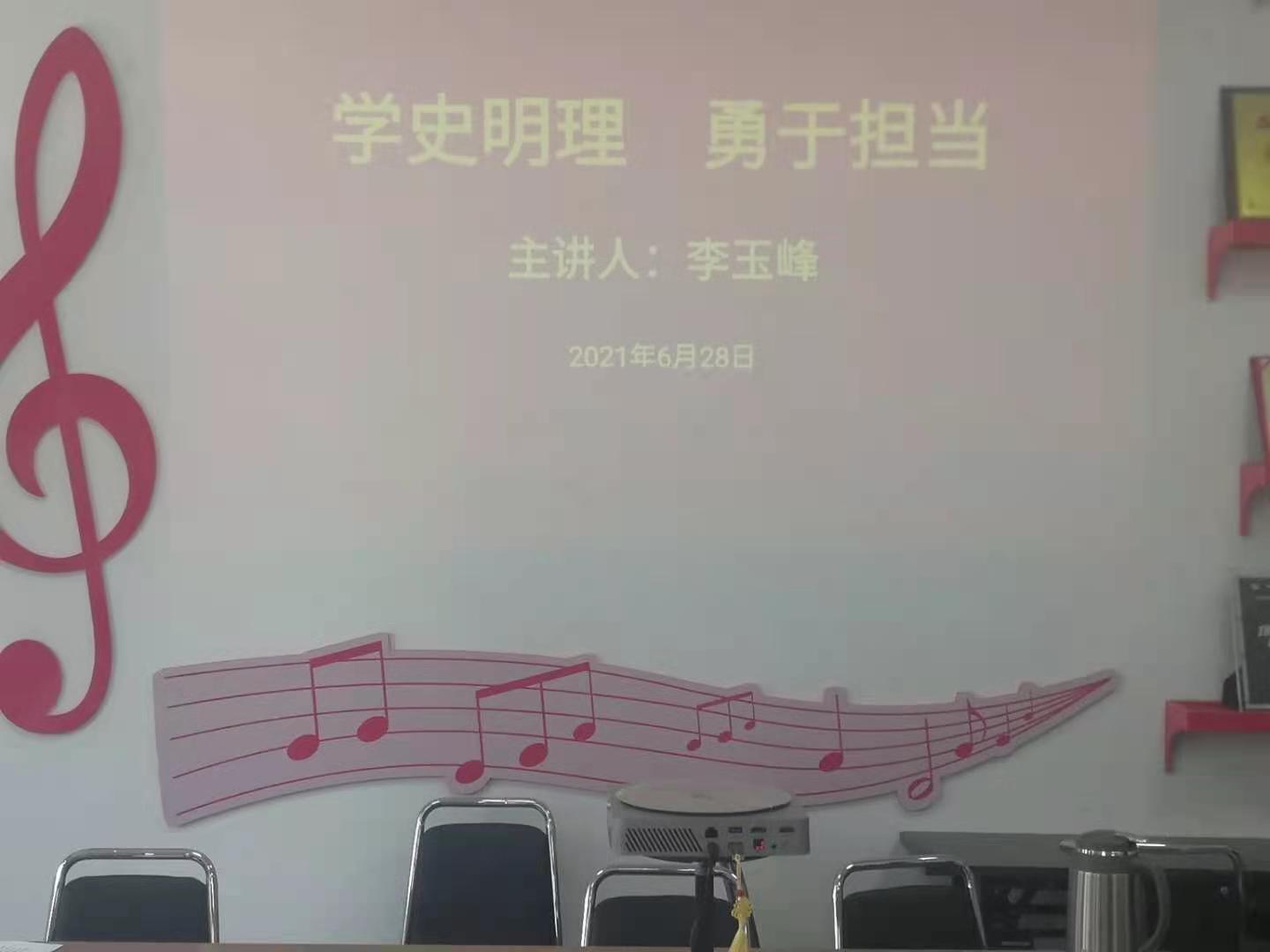 为纪念中国共产党成立100周年,根据学院“七个一”系列主题活动的统筹安排, 6月28日下午,学院副经理李玉峰来到太阳成集团122ccvip为全体党员教职工上了一堂“学史明理、勇于担当”的党课,党课在太阳成集团122ccvip403会议室举行,由党总支书记陈静梅主持,全体教师党员和员工入党积极分子参加。