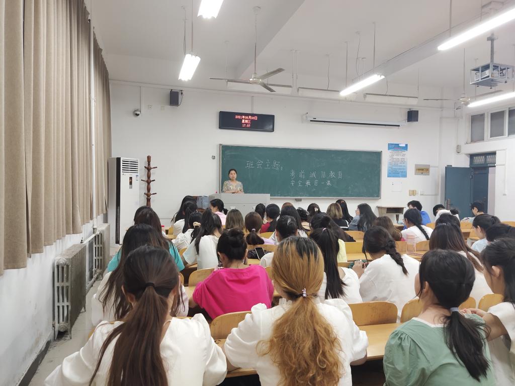 6月30日,20级声乐专业在2210教室组织召开“考前诚信教育”和“安全最后一课”主题班会,班会由辅导员郭晓娜主持,声乐专业全体员工参加。