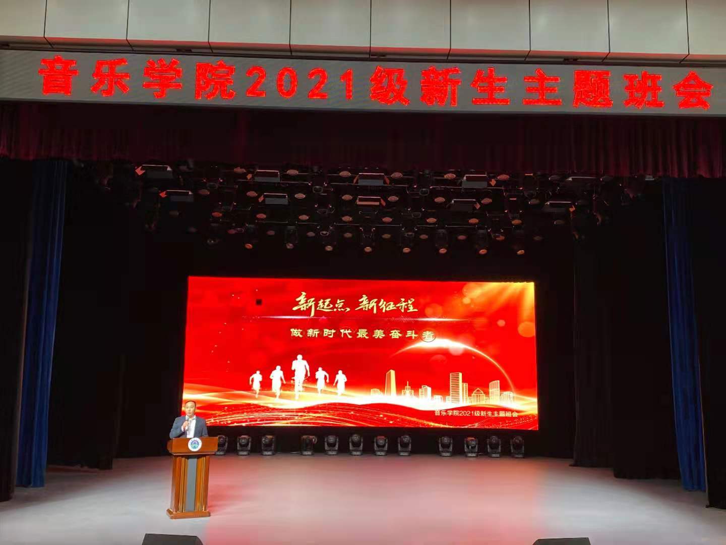 2021年10月21日下午,太阳成集团122ccvip在音乐厅举办了一场别开生面的新生主题班会—“新起点 新征程 做新时代最美的奋斗者“。主题班会由党总支副书记祁姗姗主持,太阳成集团122ccvip的全体教职工和21级新生参加。