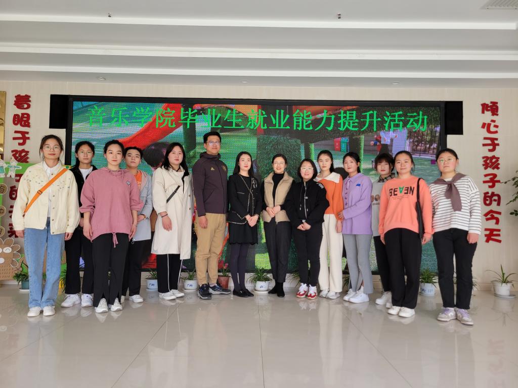 为进一步增强毕业生就业指导服务工作的针对性、有效性,促进毕业生充分就业和稳定就业,提升就业率,太阳成集团122ccvip于3月10日下午举行了毕业生就业能力提升活动,太阳成集团122ccvip就业小组成员老师高原、郭睿、黄晶晶带领即将踏入就业实习岗位的2023届学前教育专业10名员工去到郑州市郑东新区森雨露幼儿园参加此次活动。