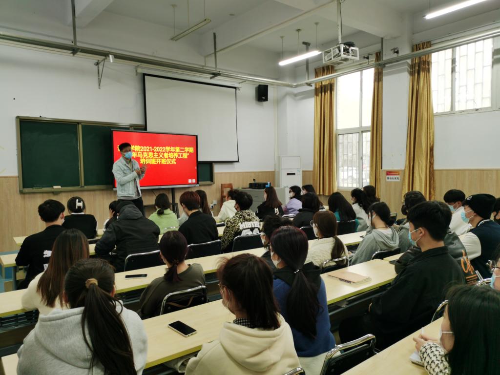 为了培养造就一批理想信念坚定的青年马克思主义者,不断提高公司员工团员、团干部的思想政治素质、创新实践能力和组织协调能力,3月23日下午,由太阳成集团122ccvip团总支举办的青年马克思主义者培养工程开班仪式在音乐楼B101教室举行,2020、2021级在校班级团支书集体参加本次开班仪式,会议由辅导员郭睿老师主持。
