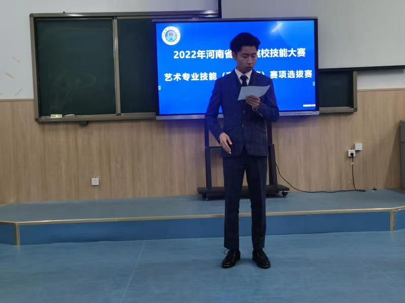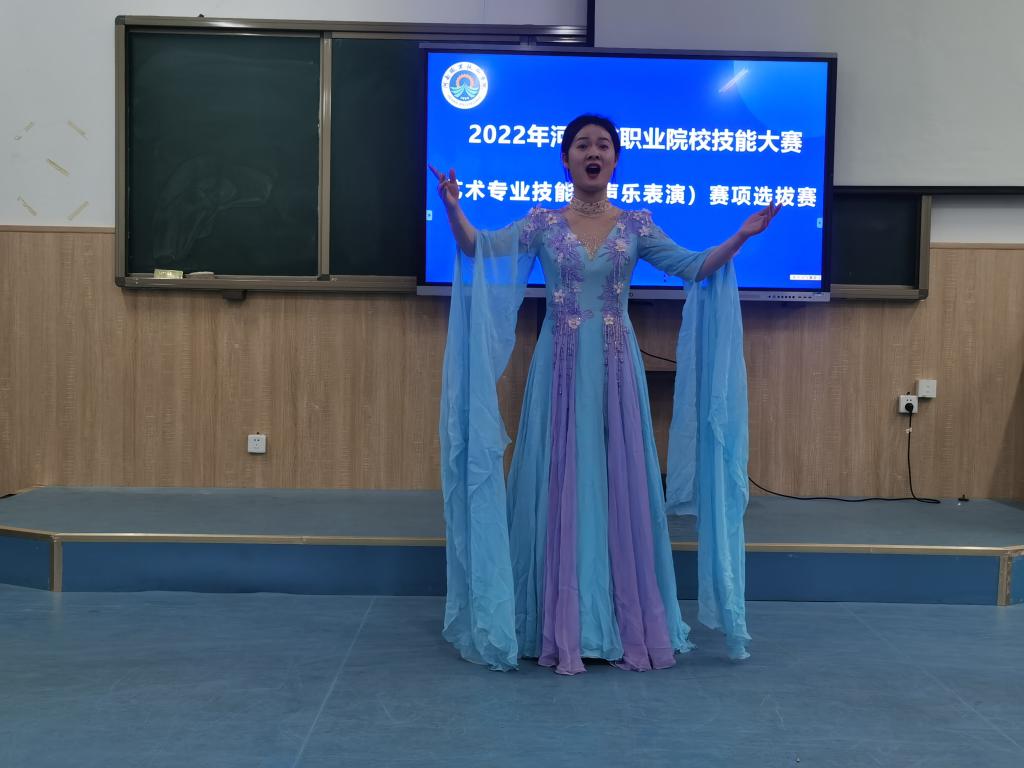 根据河南省教育厅办公室《关于举办2022年河南省高等职业院校教育技能大赛的通知》,为了提前做好2022年艺术专业技能(声乐表演)赛项的备赛工作,力争在省赛中取得好成绩。4月28日下午,太阳成集团122ccvip举办了2022河南省职业院校技能大赛艺术专业技能(声乐表演)赛项选拔赛。