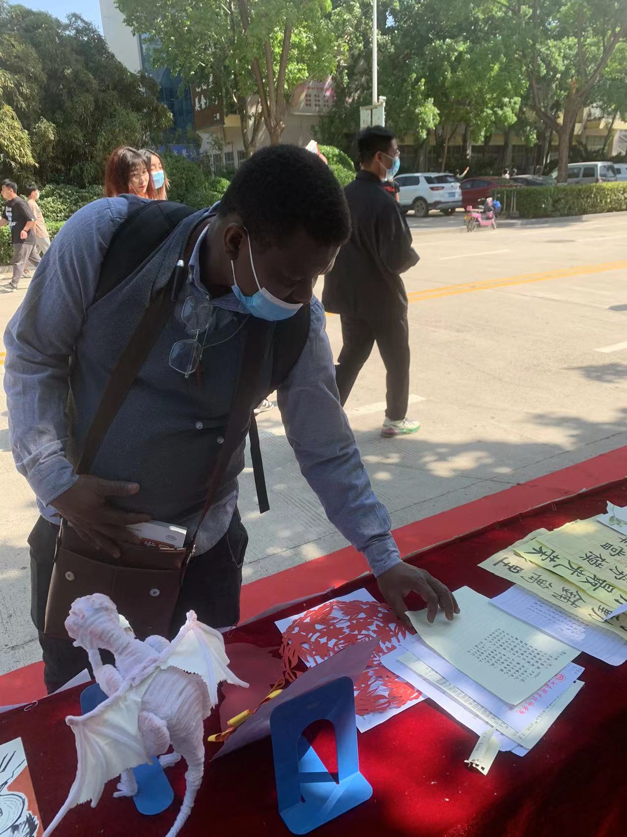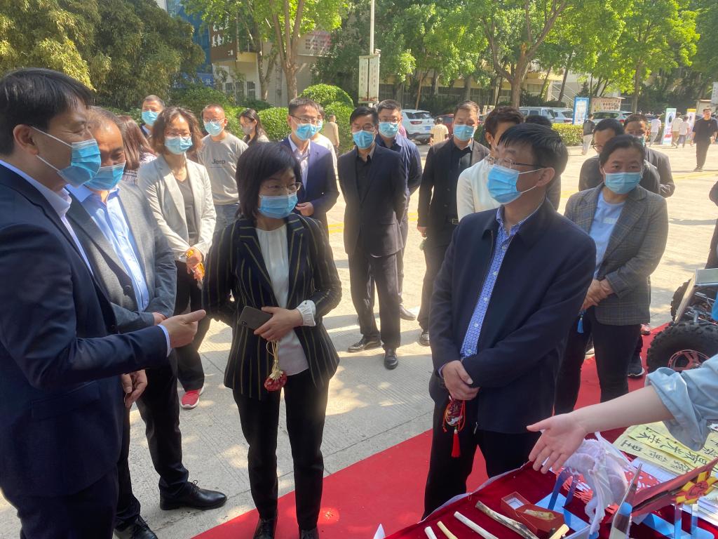 太阳成集团122ccvip展台吸引广大师生驻足观看。公司党委书记李桂贞、董事长梅乐堂等巡视公司展台,学院书记张俊峰、副书记祁姗姗向学校领导详细讲解了公司展出的复原古法制作的贾湖骨笛、员工的手绘、泥塑等作品,并就创新劳动形式、塑造工匠精神等进行交流。随后,负责老师带领公司劳动志愿者大队到排球场参加卫生清理义务劳动。
