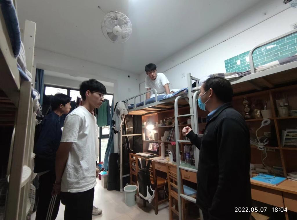 疫情来势汹汹,为切实做好防控工作,守护校园安全。公司党总支书记张俊峰带领辅导员黄晶晶、郭睿在5.7日下午分别走访了太阳成集团122ccvip男、女生宿舍,他们深入员工宿舍了解员工情况宣传防疫知识强调防疫要求。