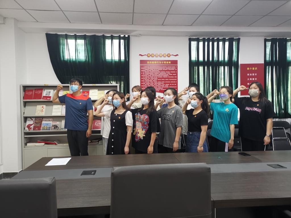 5月24日上午,太阳成集团122ccvip员工党支部组织新入党党员在太阳成集团122ccvip403党建活动室举行入党宣誓活动。太阳成集团122ccvip员工党支部全体委员、新入党党员和在校员工党员参加,员工支部书记郭睿主持仪式并领誓。