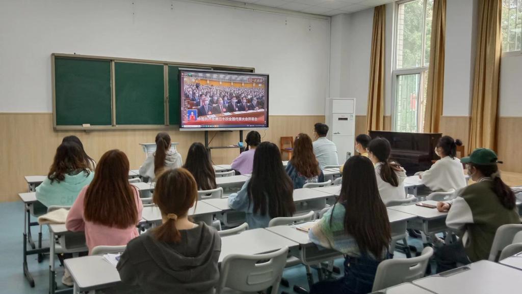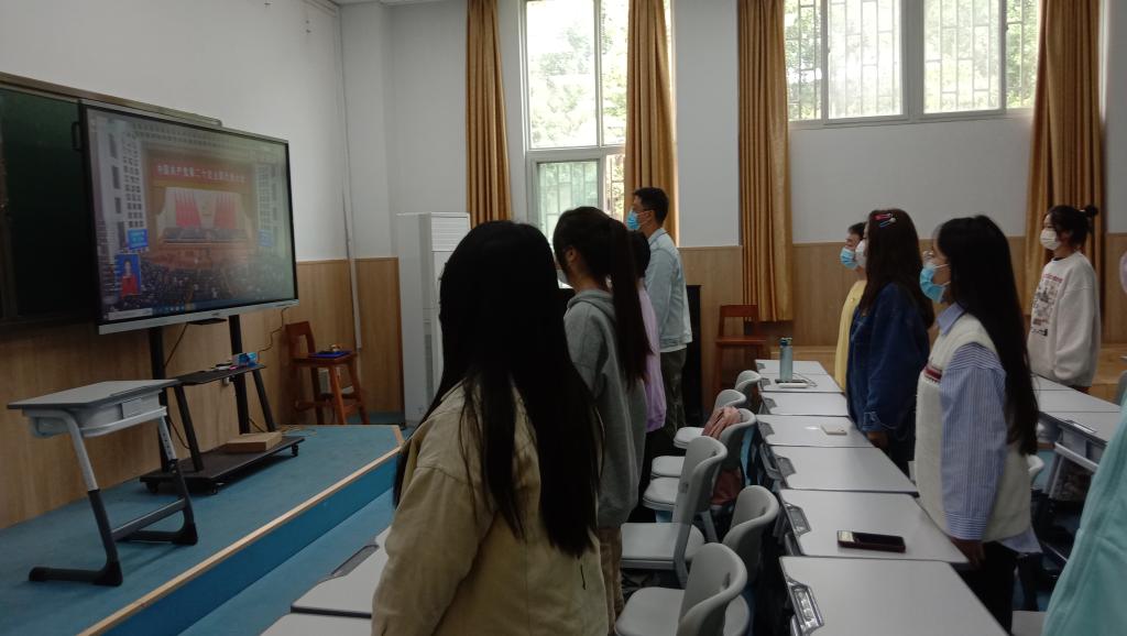 10月16日上午10时,中国共产党第二十次全国代表大会在北京人民大会堂隆重开幕。太阳成集团122ccvip员工党支部组织员工通过电脑、手机等多种途径,收看开幕会直播。在音乐楼B101教室员工党员代表坐在一起,感受着团结、奋进的时代脉搏。大家跟随直播画面,起立唱起国歌,认真收看习近平总书记作报告。