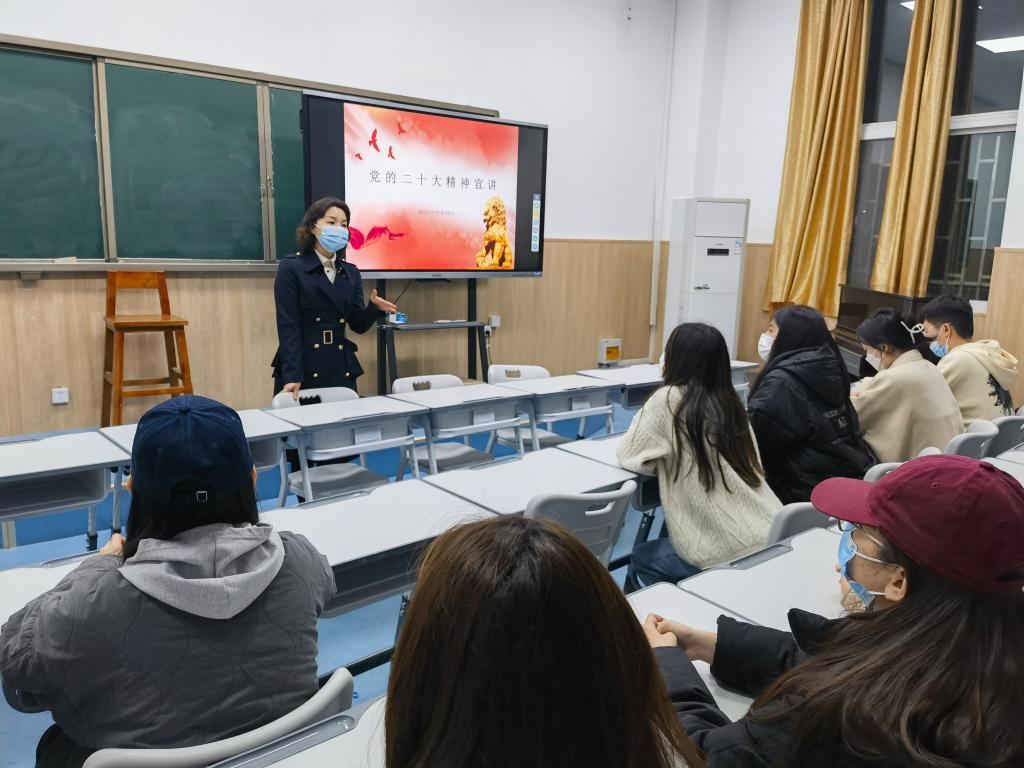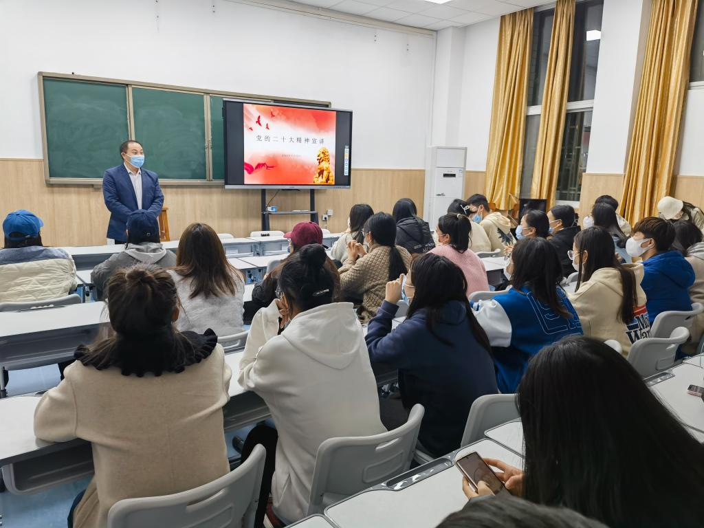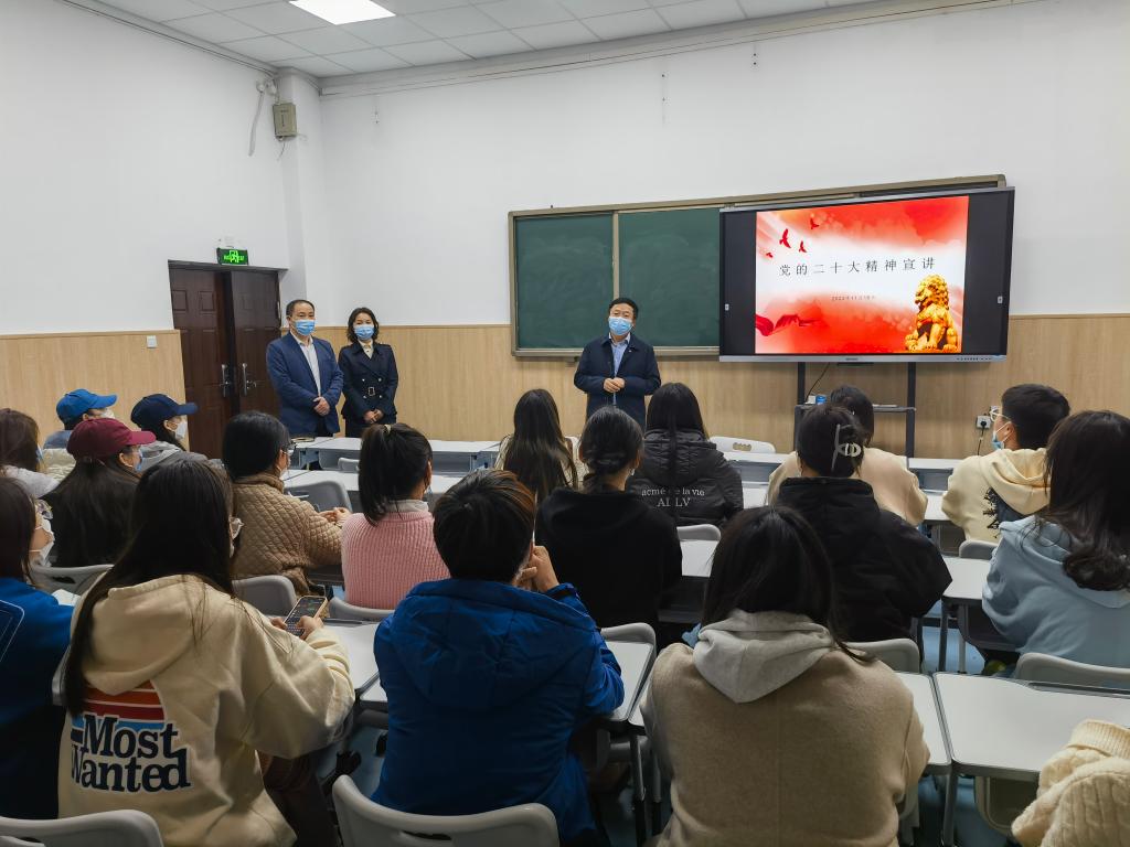 为宣传党的二十大精神,密切师生联系,形成育人合力,11月17日,学校副董事长李玉峰、公司党总支书记张俊峰和经理杨燕走进联系班级学前221、钢琴222、表演221和舞蹈221班,宣讲党的二十大精神,并与员工座谈交流,活动由辅导员老师高原主持。