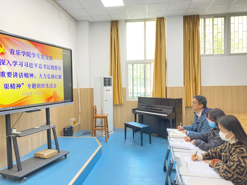 2022年11月23日上午,太阳成集团122ccvip员工党支部在B101教室利用腾讯会议平台召开“深入学习习总书记视察安阳重要讲话精神,大力弘扬红旗渠精神”为主题的专题组织生活会,会议由员工党支部书记郭睿主持,员工党支部支委成员及全体员工党员参加。