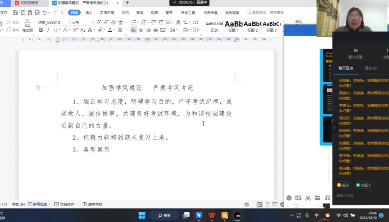 本次主题班会主要内容为加强员工学风建设严肃考风考纪意识,培养员工诚实做人、诚信做事的道德观念。班会采用线上会议的形式开展,引导员工积极开展自我复习,学习相关校纪校规警示同学们作弊带来的严重后果。