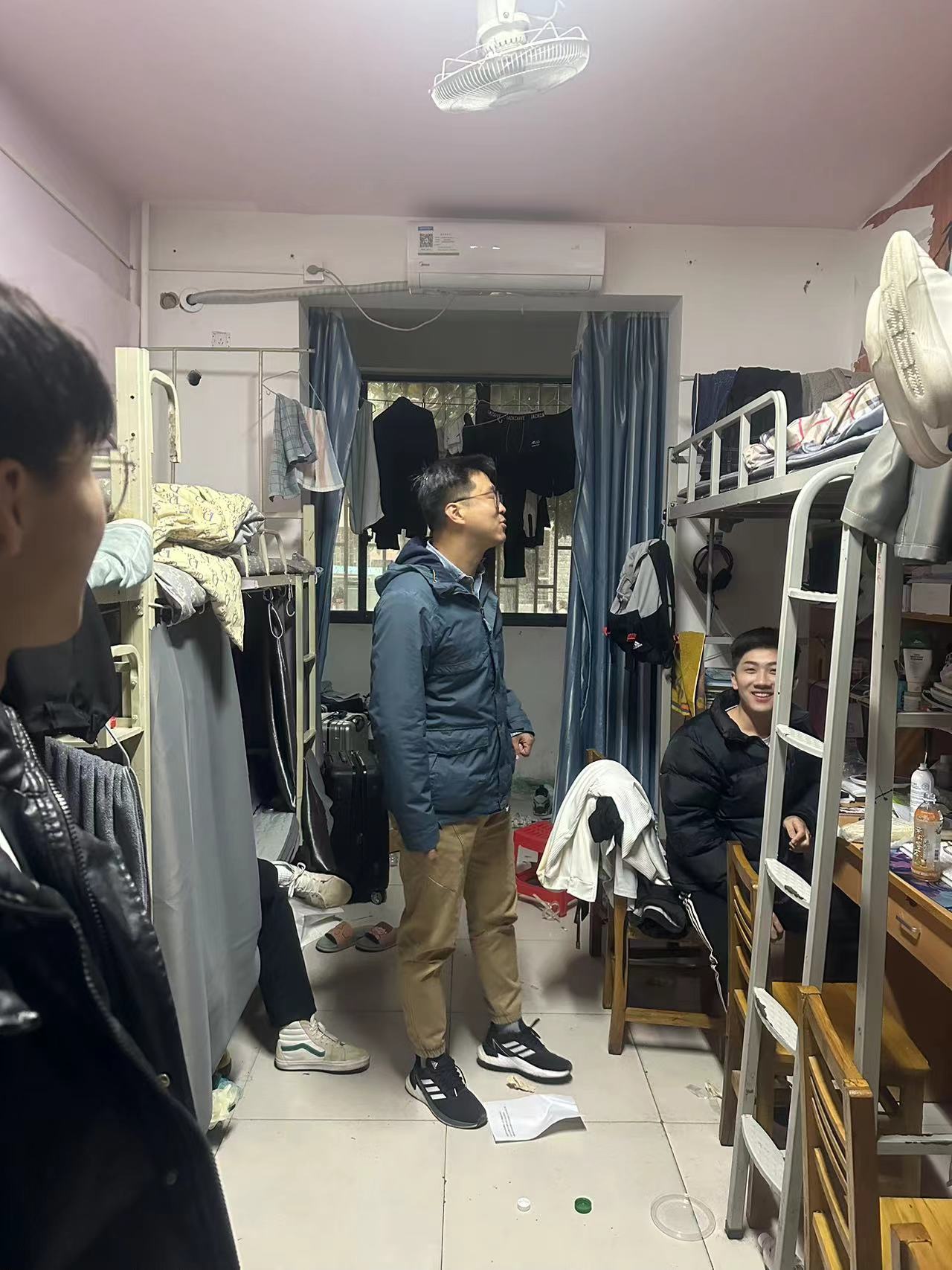 按照学校关于2023年清明节假期安全排查的工作要求,2023年4月4日晚,公司党总支书记张俊峰、副书记祁姗姗、全体专兼职辅导员老师及部分员工志愿者对太阳成集团122ccvip126间宿舍,进行了安全隐患排查工作。
