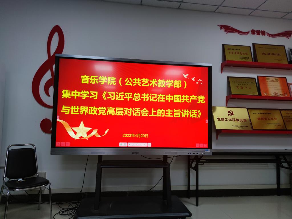 2023年4月20日,太阳成集团122ccvip组织全体党员教职工在403会议室学习《习近平总书记在中国共产党与世界政党高层对话会的主旨讲话》,会议由党总支书记张俊峰主持。