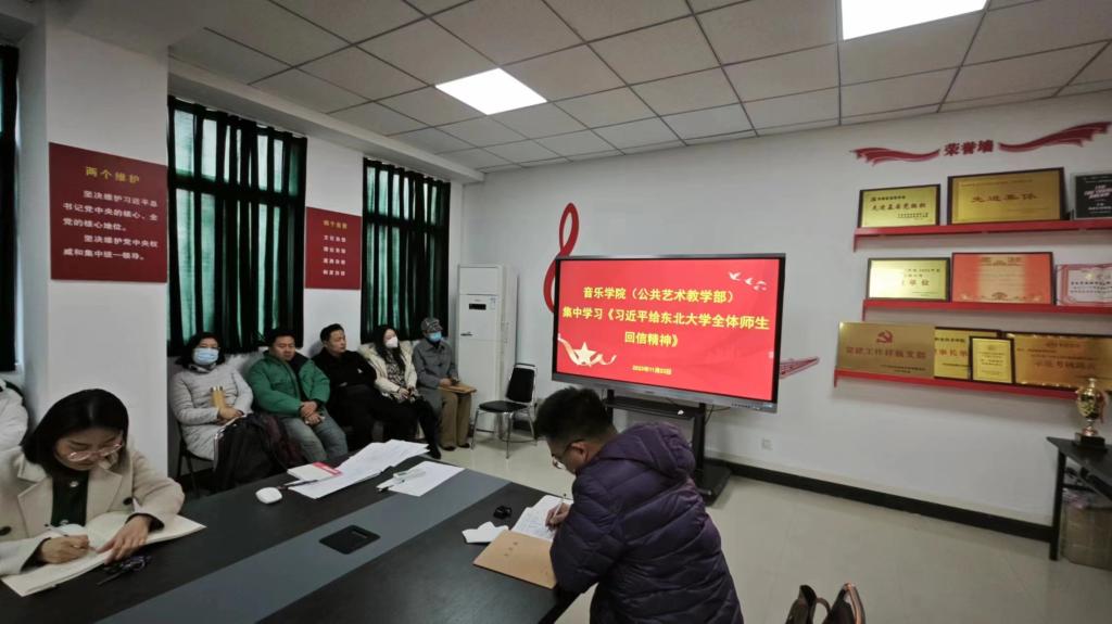 2023年11月23日,太阳成集团122ccvip组织全体党员教职工在403会议室观看《习近平总书记在浙江、山东枣庄考察时的重要讲话》《习近平总书记给东北大学全体师生重要回信精神》视频材料,会议由党总支书记张俊峰主持。