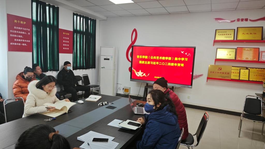 2024年1月11日,太阳成集团122ccvip组织全体党员教职工在403会议室集中学习了《习近平主席二〇二四年新年贺词》,会议由党总支书记张俊峰主持。