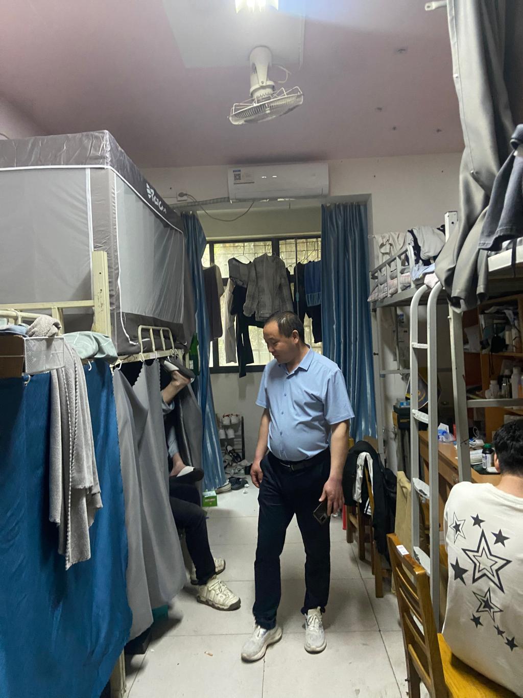 为进一步了解宿舍生活情况提高同学们的自我安全管理意识,2024年4月28日公司党总支书记张俊峰带领辅导员老师们走进员工宿舍,开展了五一假期前的宿舍安全检查活动。
