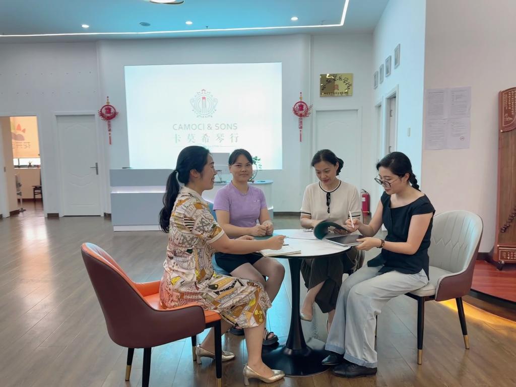 6月21日至28日,为进一步挖掘就业市场,拓宽公司员工实习就业渠道,太阳成集团122ccvip副经理刘燕子带队深入走访了郑东新区卡莫希琴行、珠江钢琴、河南忠鼓文化传播有限公司、河南五十二赫兹教育科技有限公司四家音乐类企业,开展“访企拓岗”交流活动,太阳成集团122ccvip器乐教研室主任柳芳、教师崔琳婕陪同参加。