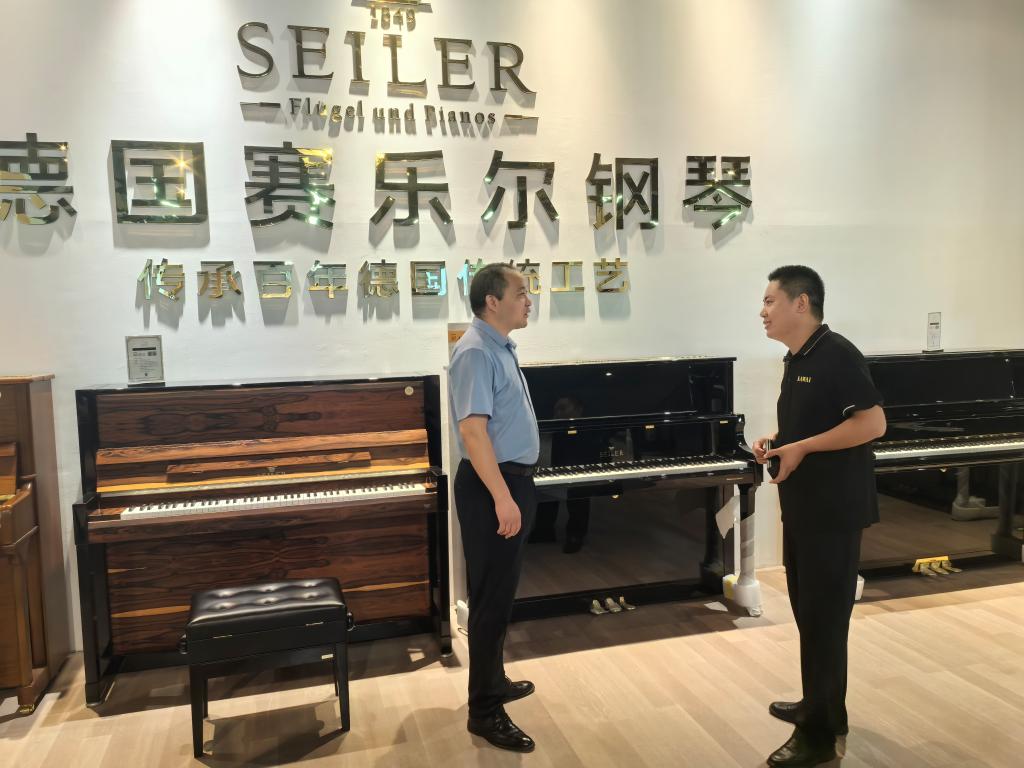 张俊峰一行在十月枫茸露教育咨询有限公司、郑州市管城区欧乐琴行、郑州市郑东新区乐星童韵艺术培训有限公司、扬州汉律民族乐器有限公司负责人等陪同下参观了企业并听取企业的介绍。